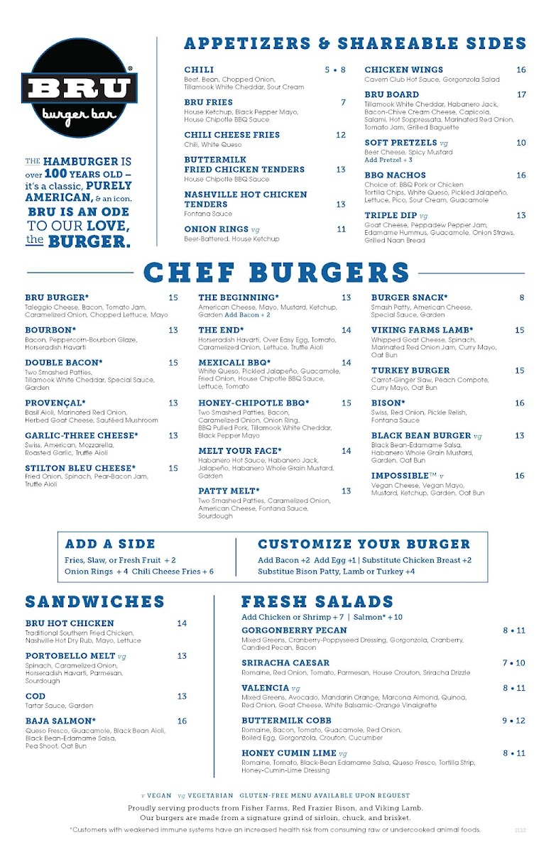 Welcome to BRU Burger Bar Noblesville, where the menu is a celebration of bold flavors and fresh ingredients. Nestled at 350 Westfield Rd, this trendy spot offers a variety of enticing sandwiches like the Bru Hot Chicken, a Southern-style fried chicken delight, and the flavorful Portobello Melt, featuring caramelized onion and horseradish Havarti.